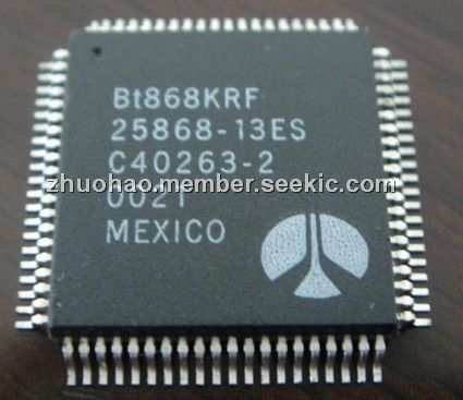 BT868KRF features: (1)5-line vertical filtering scaling for overscan compensation and flicker filtering; (2)CCIR601 compatible input mode; (3)Luma and chroma comb filtering; (4)3 × 10-bit DACs; (5)6 MHz Luma bandwidth; (6)Macrovision 7.0 copy protection; (7)80-pin PQFP package; (8)3.3 V operation with 5 V tolerant IOs; (9)2-line serial programming interface; (10)Power-Down modes; (11)Master/slave video timing operation; (12)TV connected register flag; (13)Automatic configuration.